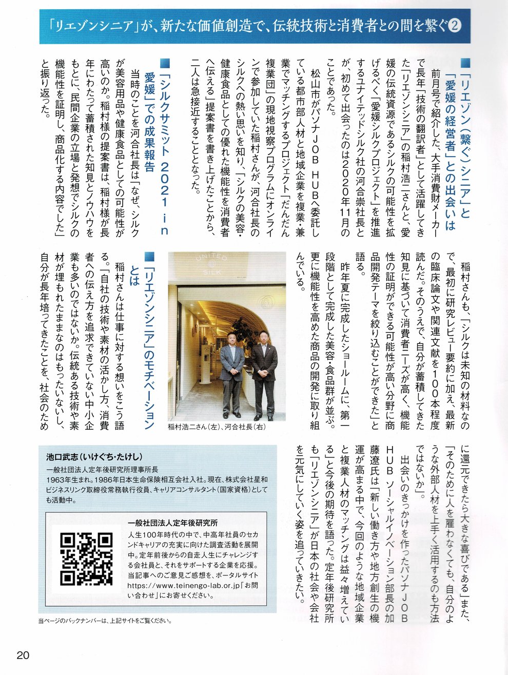 雑誌「経営情報(2022年1月号)」に、中小企業の支援活動について掲載されました。